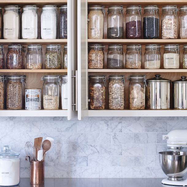 Instead, your cabinets sport gorgeous pantry jars that make finding what you need effortless.
